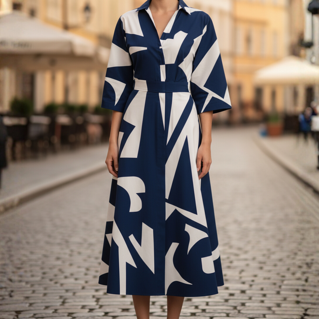 Vestito Donna Chemisier Materiale di Alta Qualità Maniche Tre Quarti