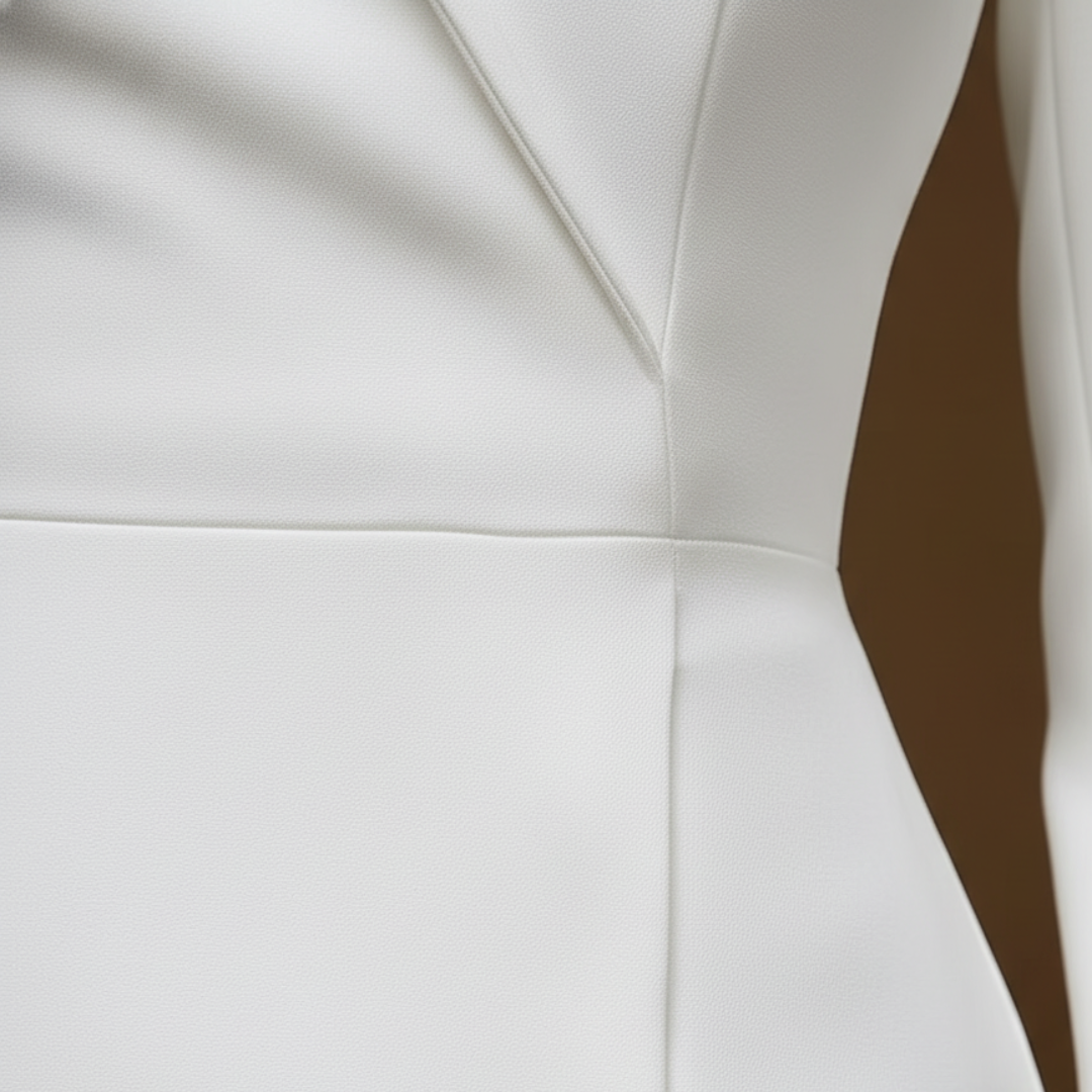 Abito da donna strutturato in poliestere. Presenta collo alto, dettagli asimmetrici e vita sagomata per una vestibilità definita. Adatto per contesti professionali, cerimonie civili e eventi serali.