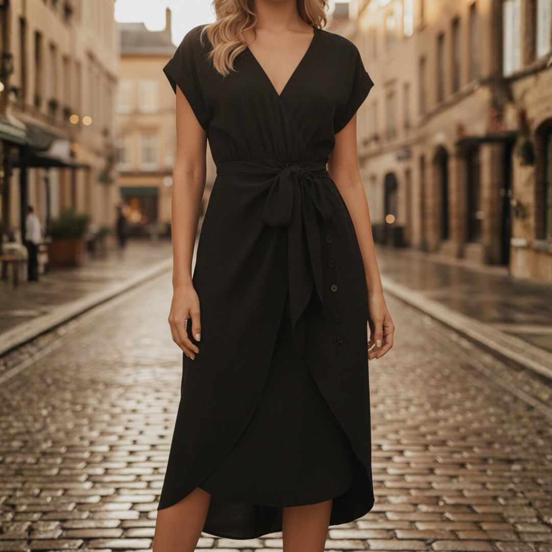 Vestito Donna in Tessuto Strutturato con Scollo a V