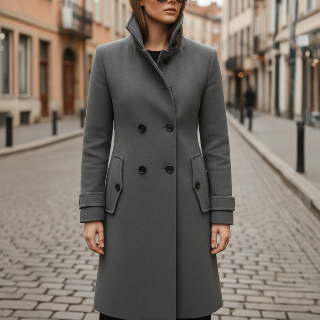 Cappotto Donna Invernale Tweed Lana Doppio Petto Grigio