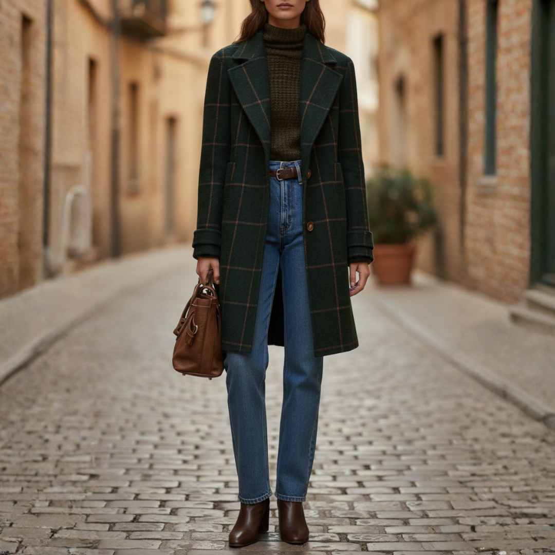 Cappotto Donna Oversize a Quadri Multicolore in Tessuto