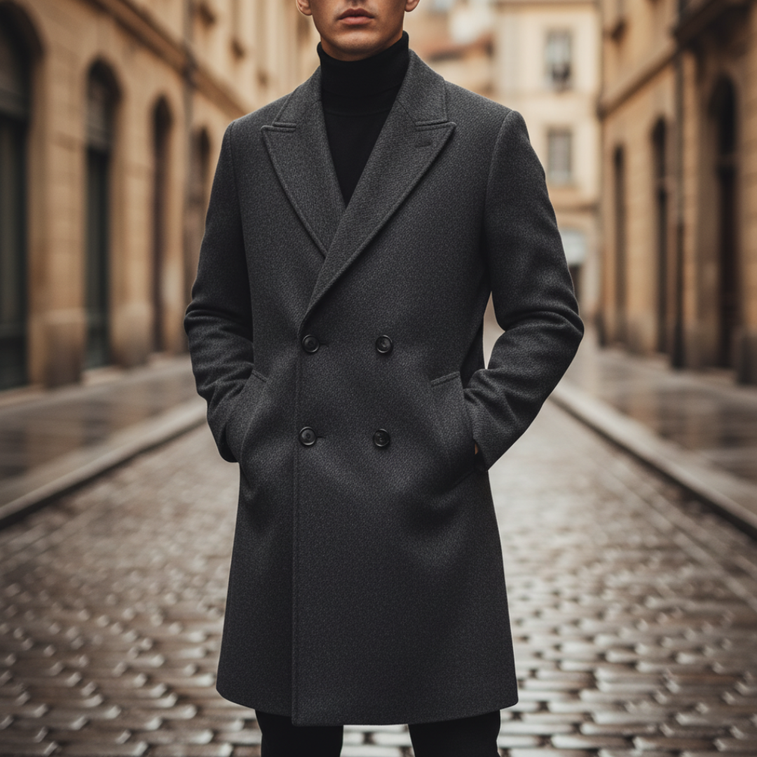 Cappotto Uomo Doppiopetto Invernale in Materiale di Alta Qualità