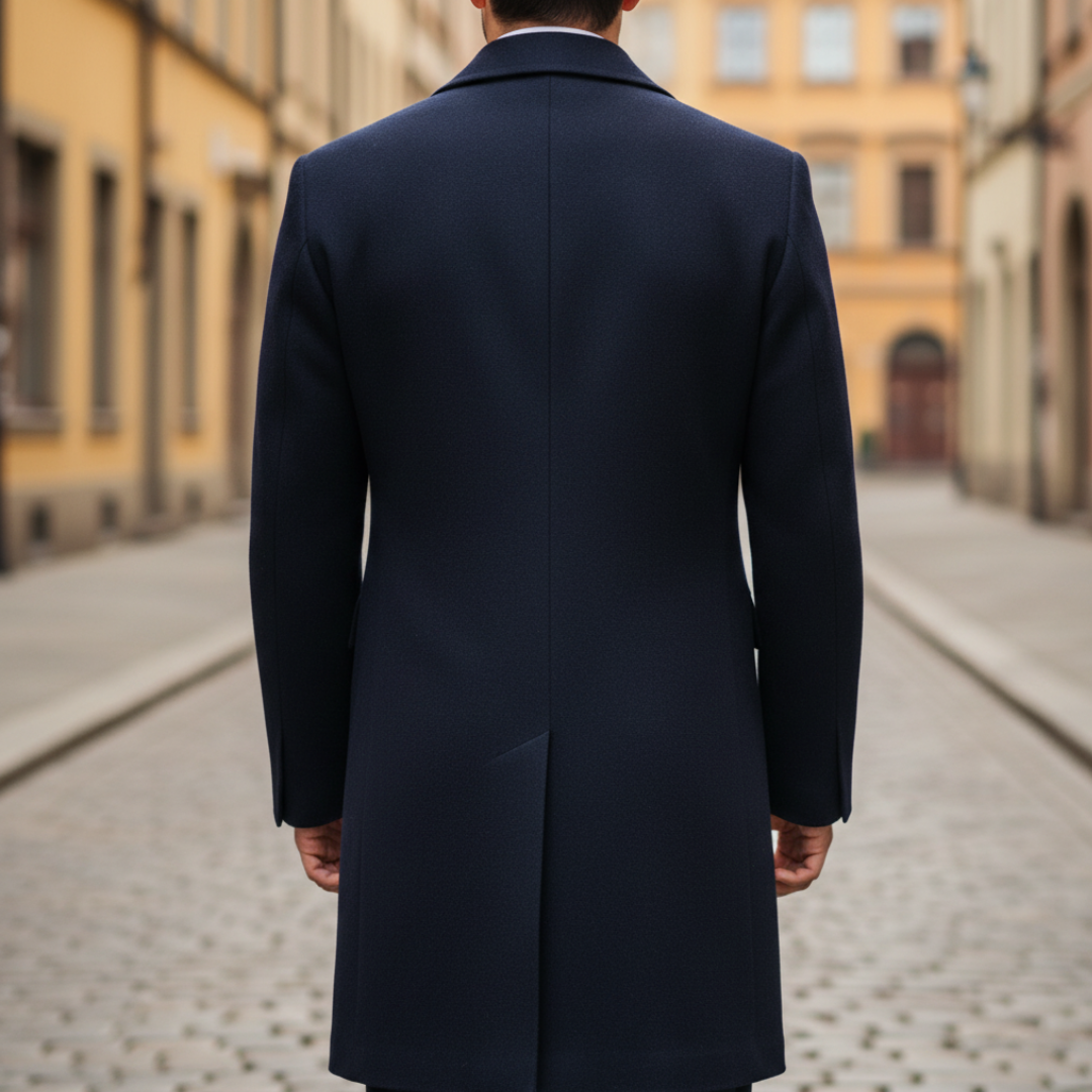 Cappotto Uomo Blu Scuro in Misto Lana Doppiopetto Invernale