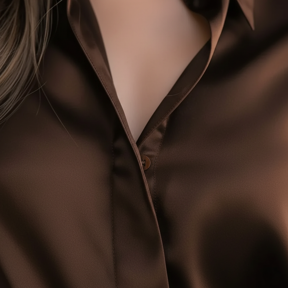 Blusa Satinata Donna Maniche Lunghe Colletto Materiale Setoso