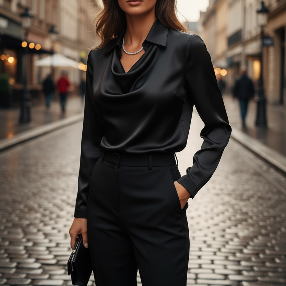 Camicia Donna con Collo Cowl a Maniche Lunghe