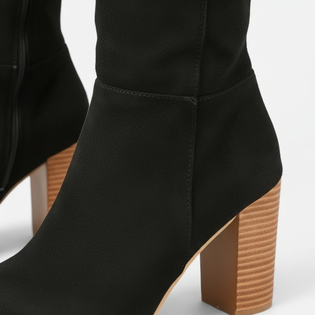 Stivali Donna Alti Tacco Quadrato in Similpelle Scamosciata