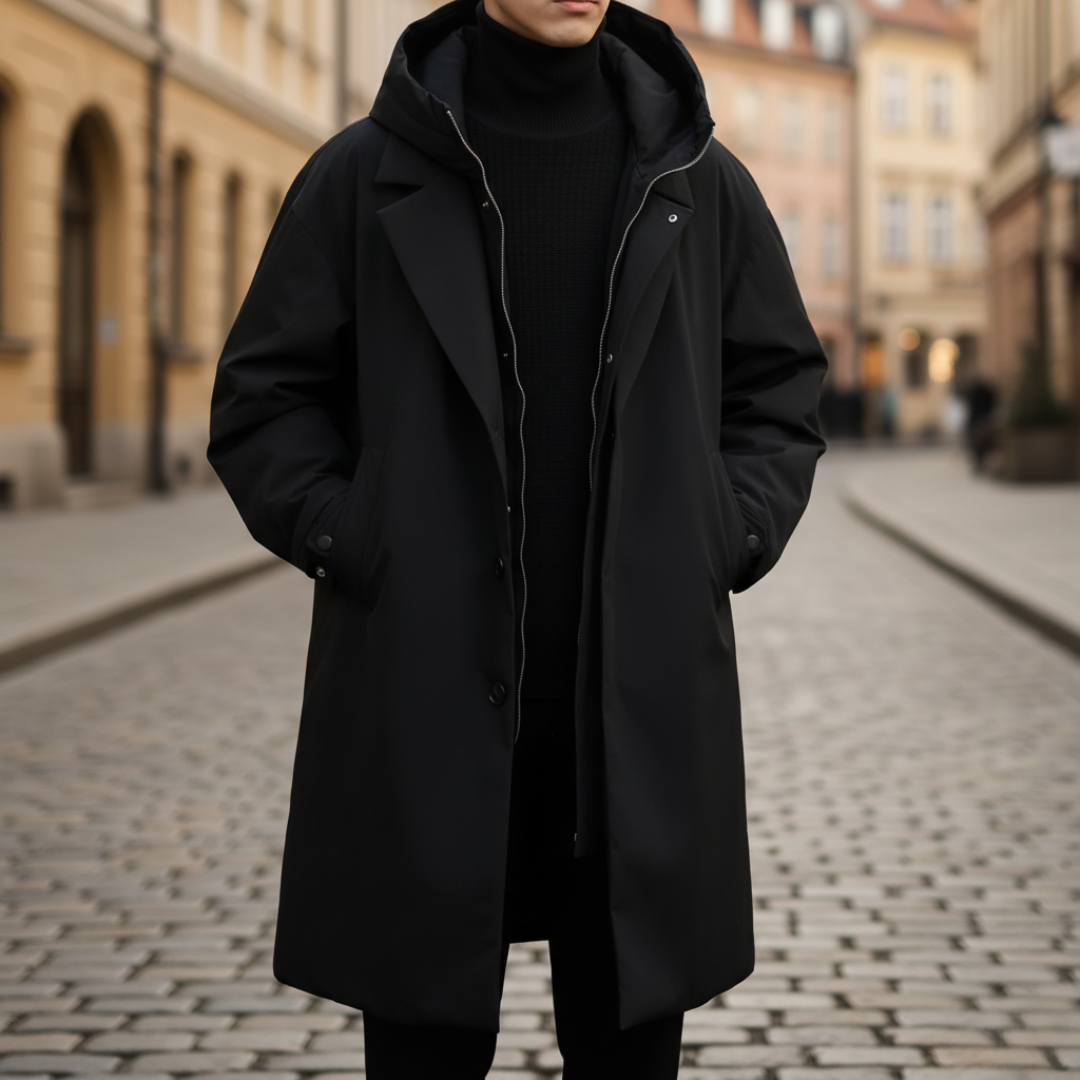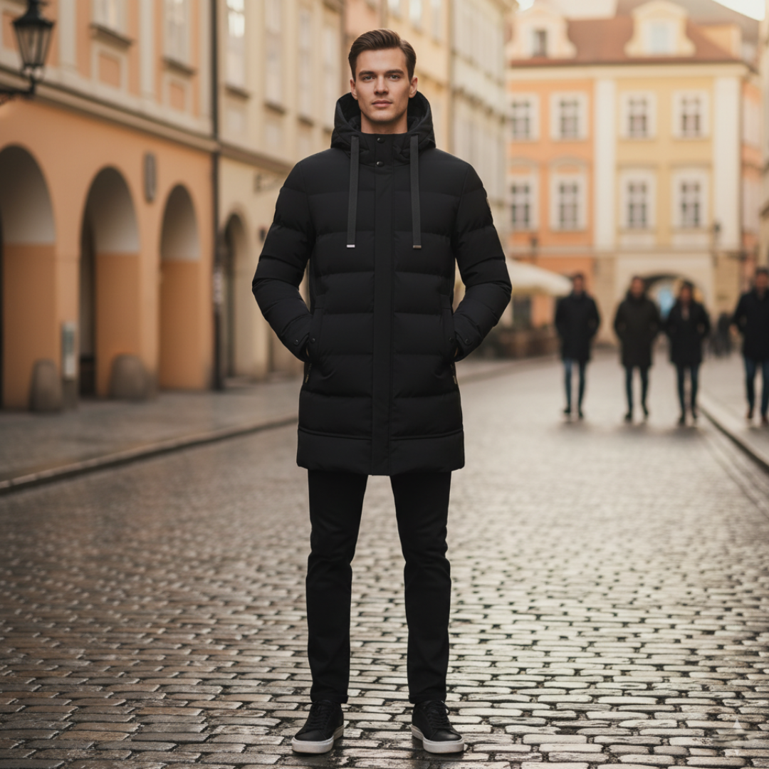 Piumino Uomo Lungo Imbottito con Cappuccio Invernale