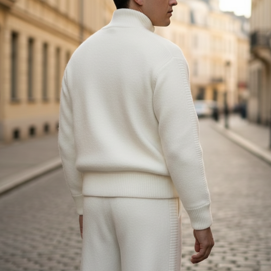 Rimani comodo e elegante con questa giacca da uomo in morbida lana lavorata a maglia. Caratterizzata da una zip integrale e un colletto alto, questa giacca offre un perfetto equilibrio tra calore e stile. Realizzata in lana di alta qualità, è ideale per l'adulto che cerca un capo versatile per ogni occasione.