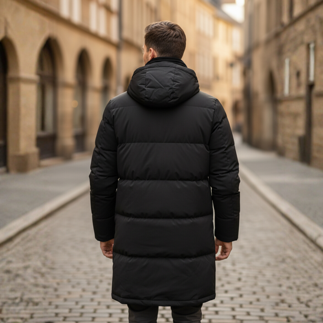 Piumino Uomo Lungo Imbottito con Cappuccio Invernale