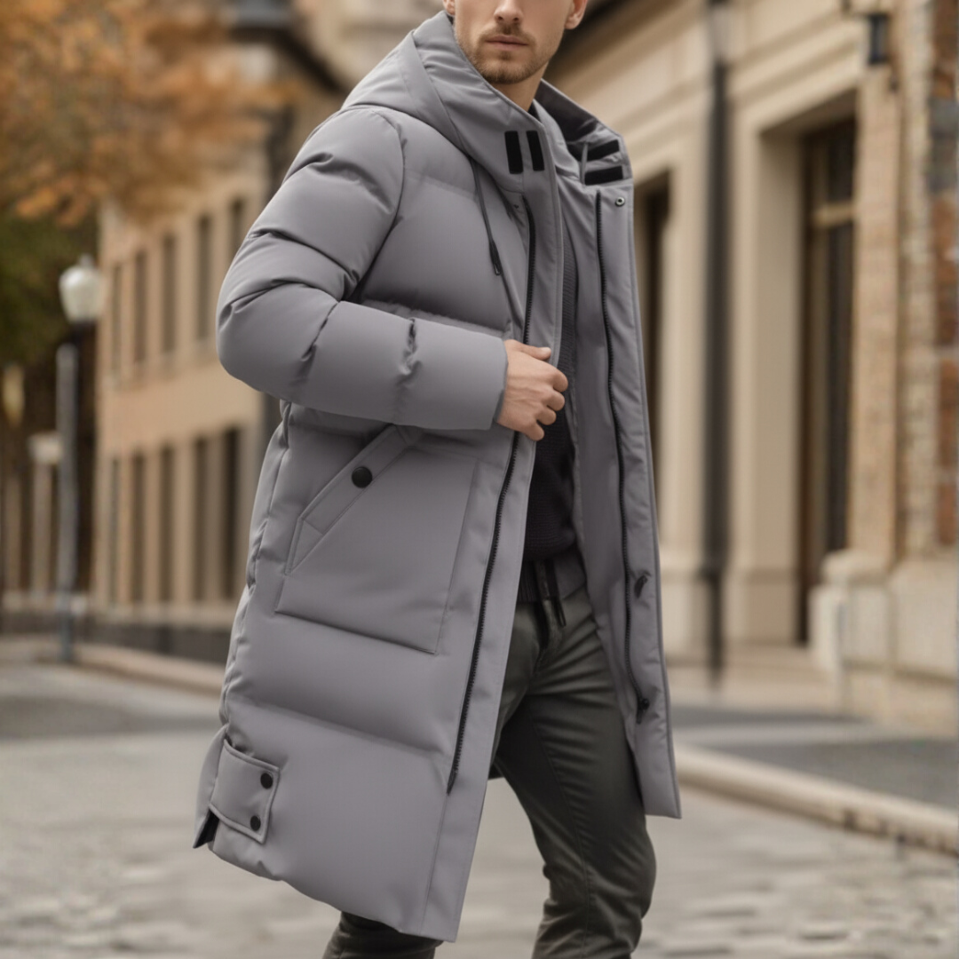 Piumino lungo pensato per l’uomo adulto, adatto al commuting, alle uscite urbane o ad attività all’aperto durante l’inverno.
