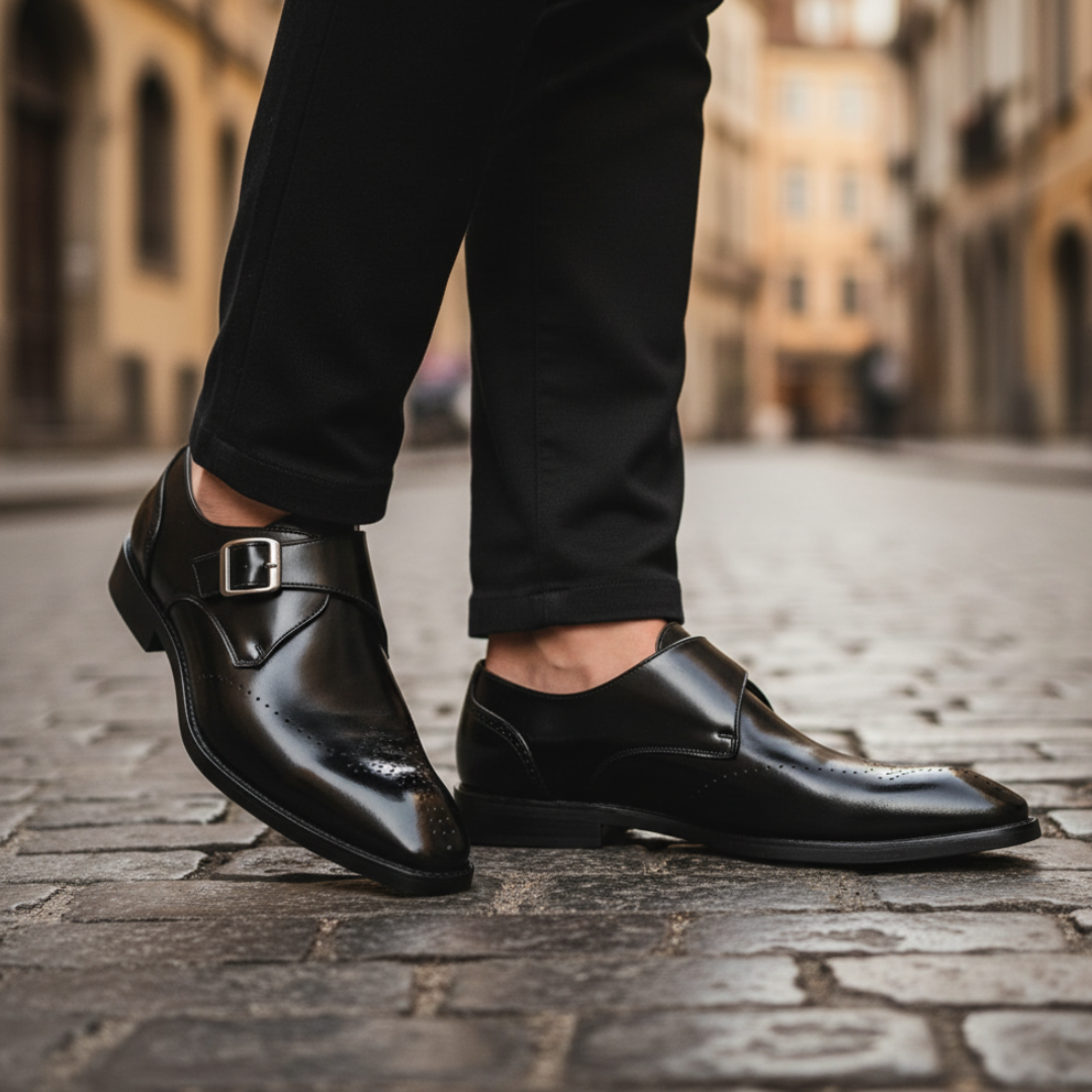 Scarpe Uomo Monk Pelle Brogue Eleganti
