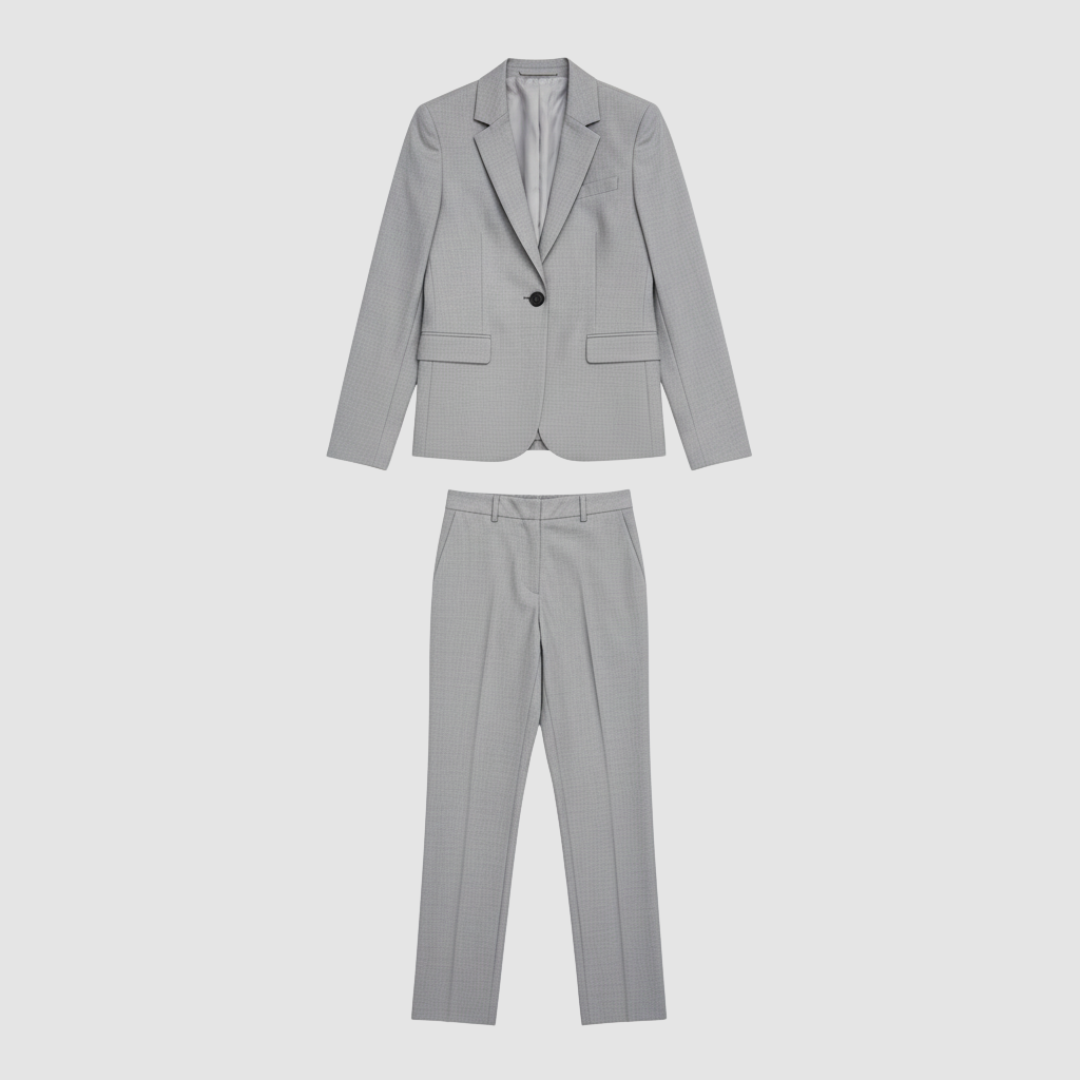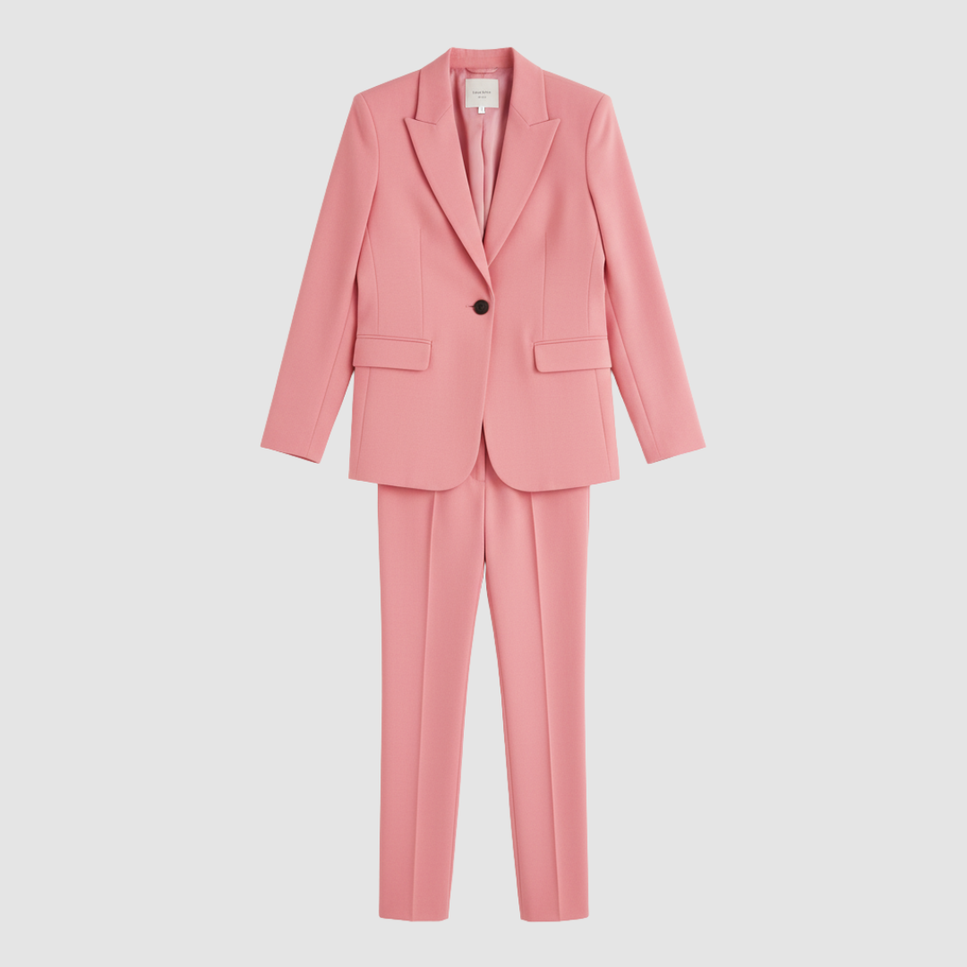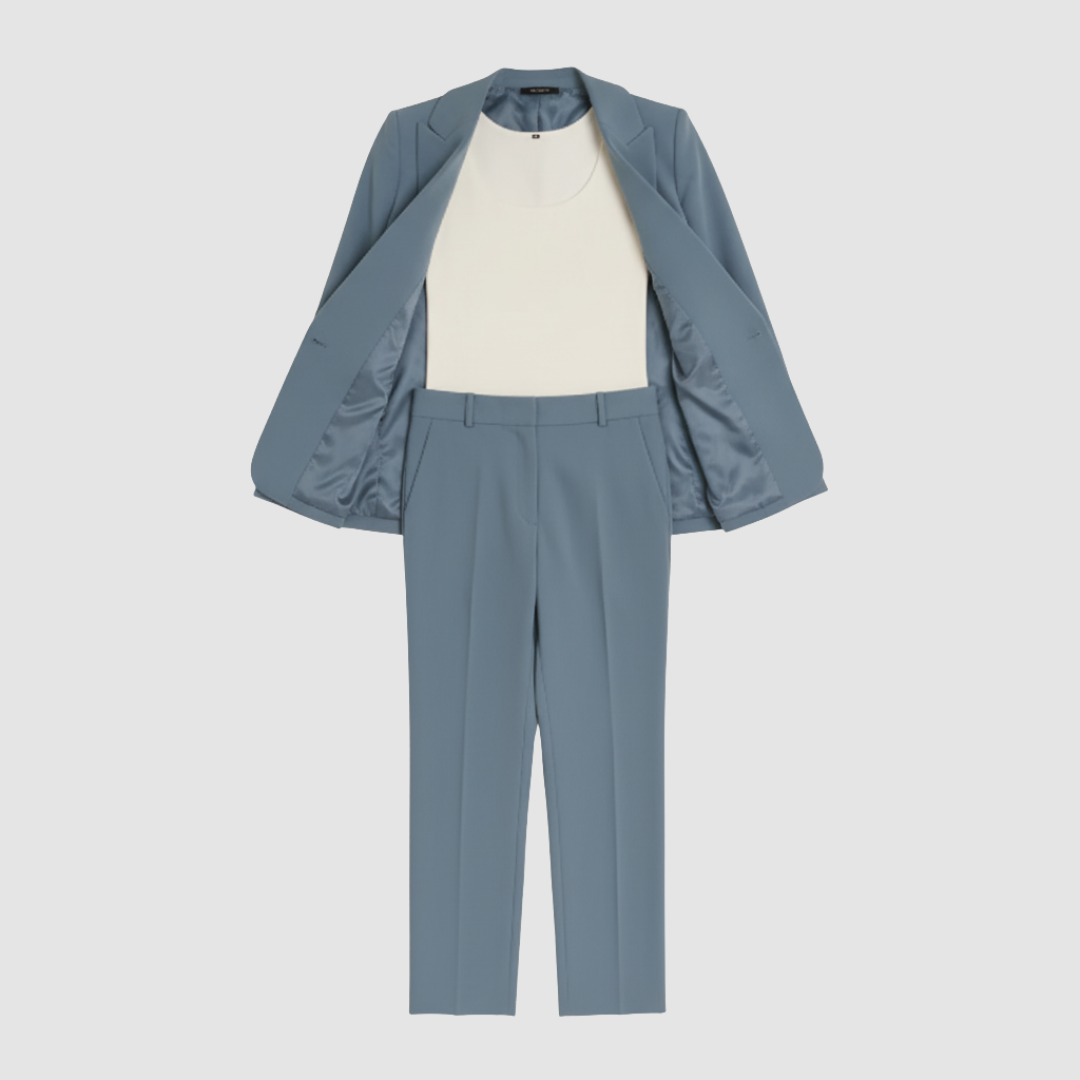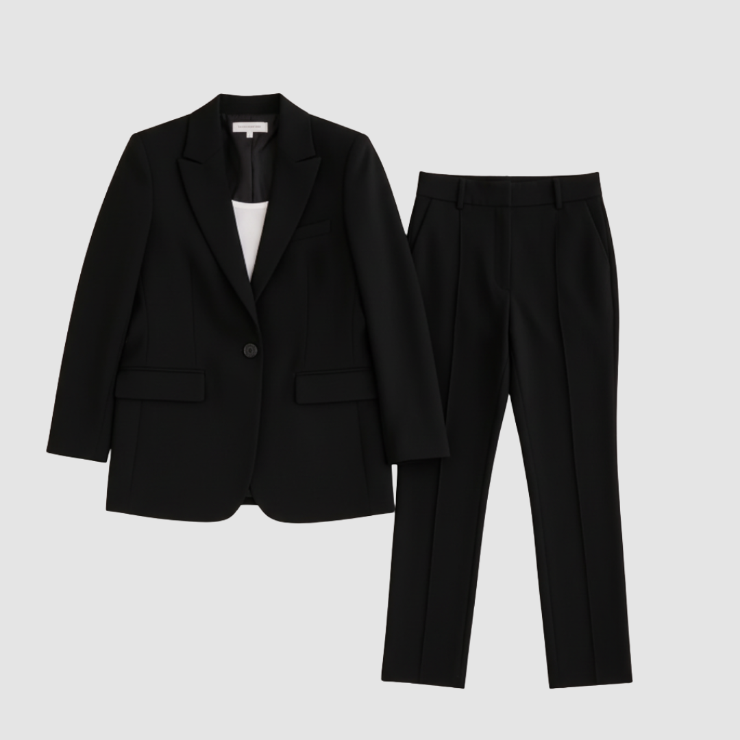 Questo abito elegante da donna è composto da giacca e pantaloni abbinati. Il design classico e raffinato è ideale per eventi formali, ufficio o incontri professionali. Disponibile in vari colori, offre un look elegante e sofisticato.
