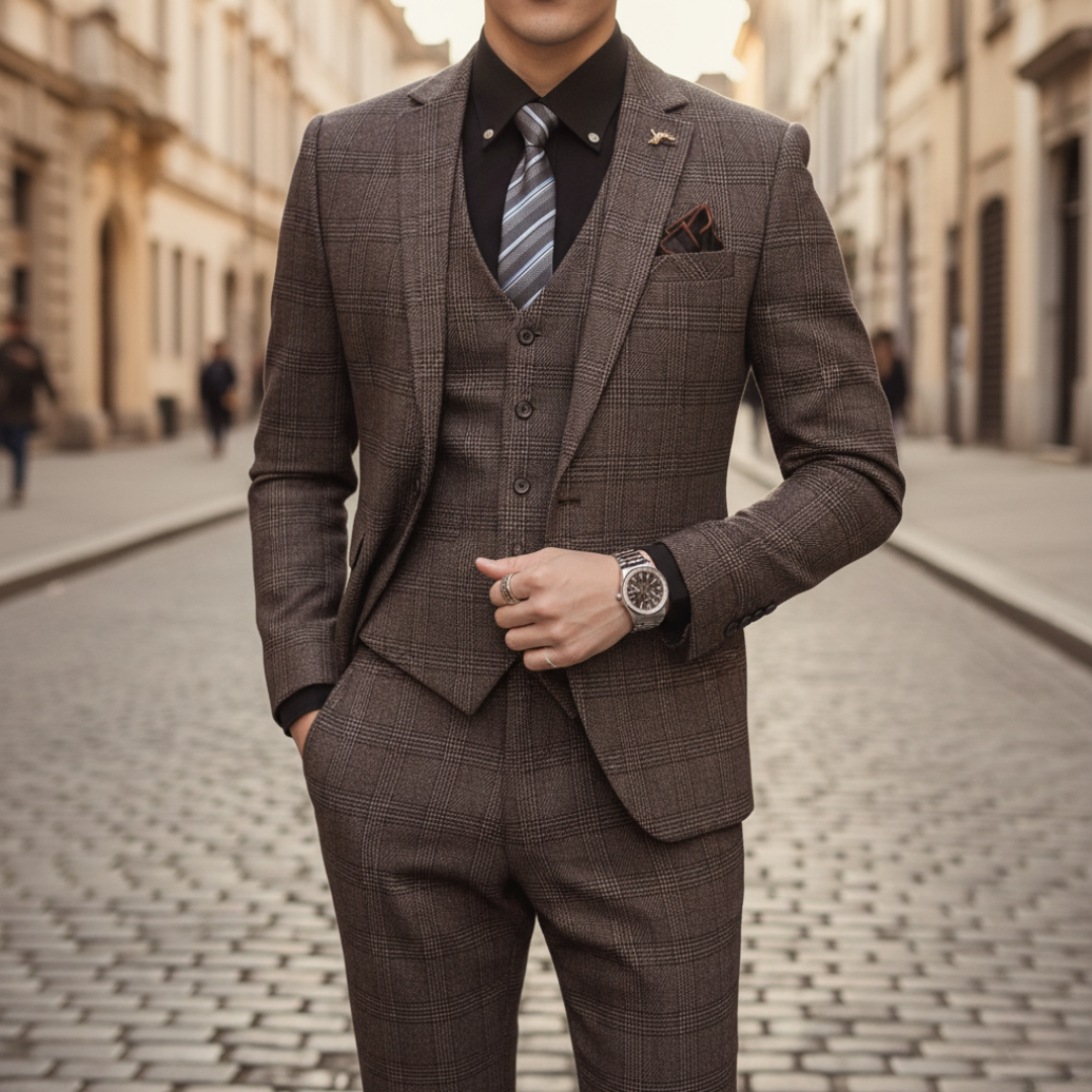 Completo Uomo 3 Pezzi in Tessuto a Quadri
