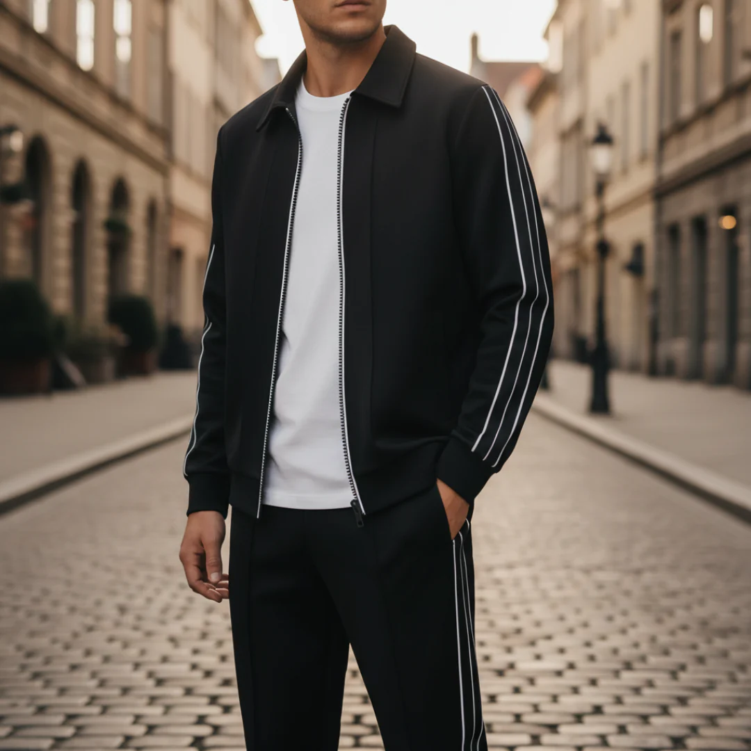 Felpa e Pantaloni Uomo in Materiale Morbido Nero con Cappuccio