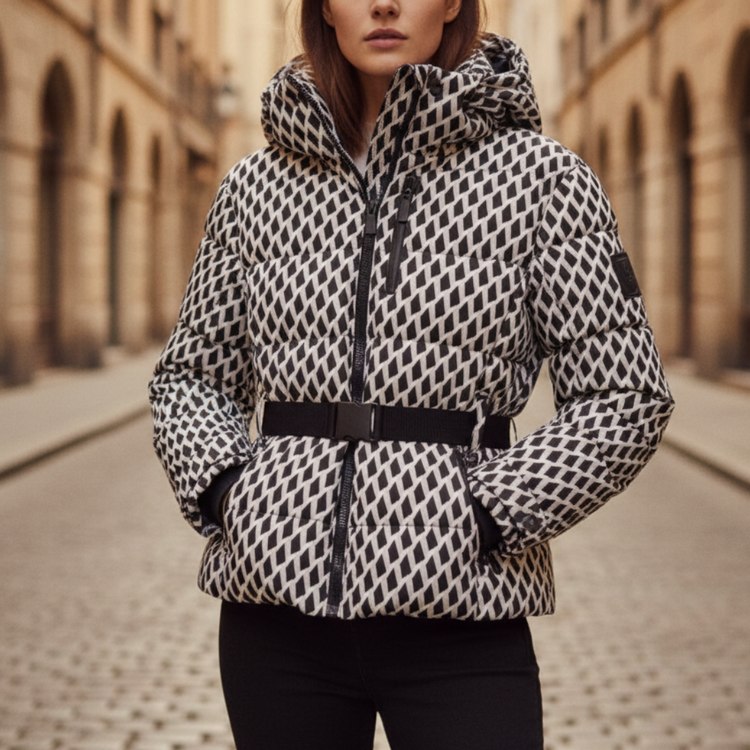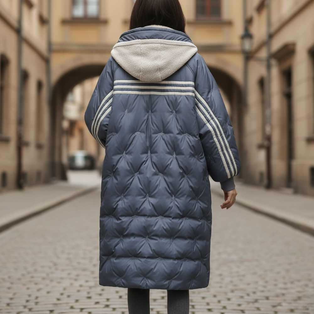 Piumino Donna Invernale Imbottito con Cappuccio e Righe