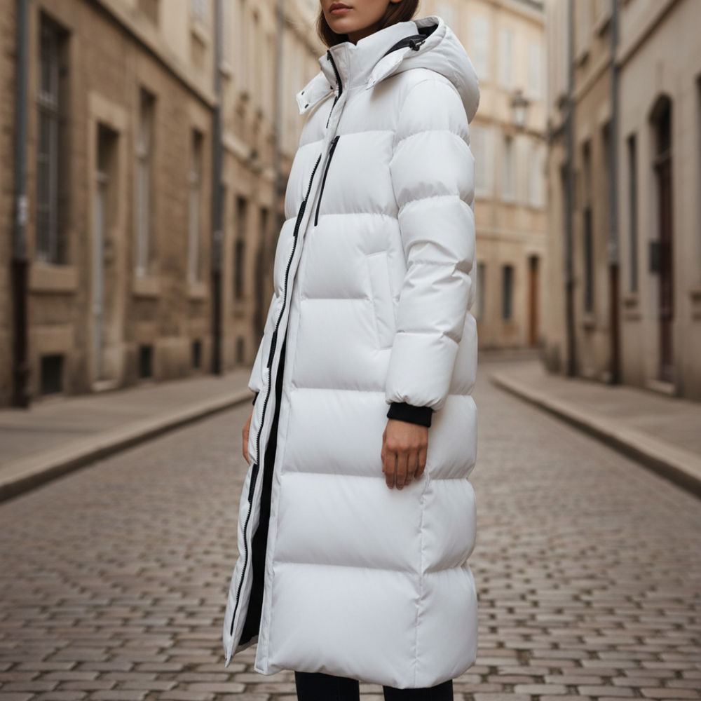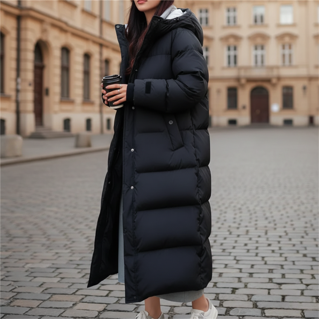 Piumino Lungo Donna in Tessuto Tecnico con Cappuccio