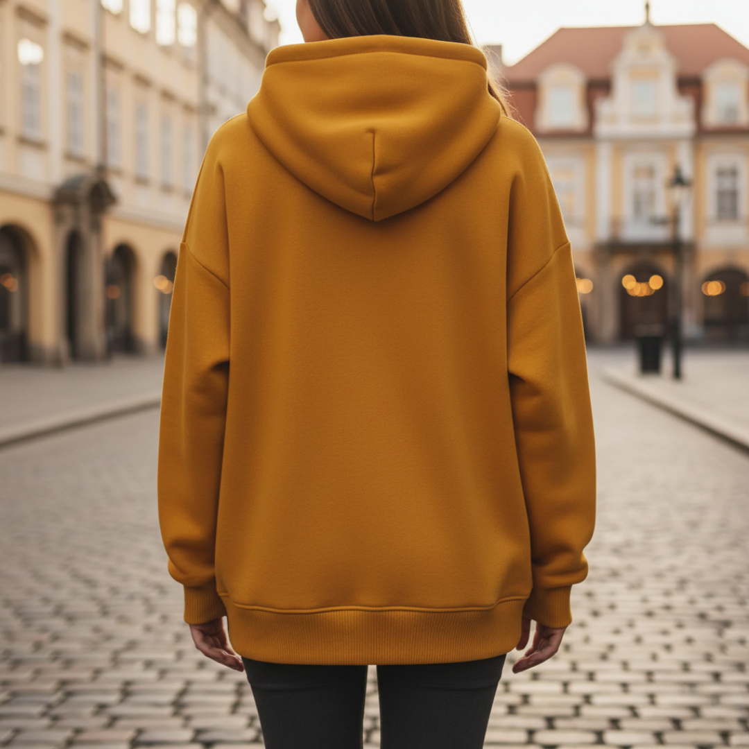 Felpa da donna casual in arancione, realizzata in tessuto morbido e comodo. Con cappuccio regolabile e tasca frontale, questa felpa è ideale per look casual e quotidiani. Disponibile anche in giallo, offre comfort e praticità per ogni occasione informale.
