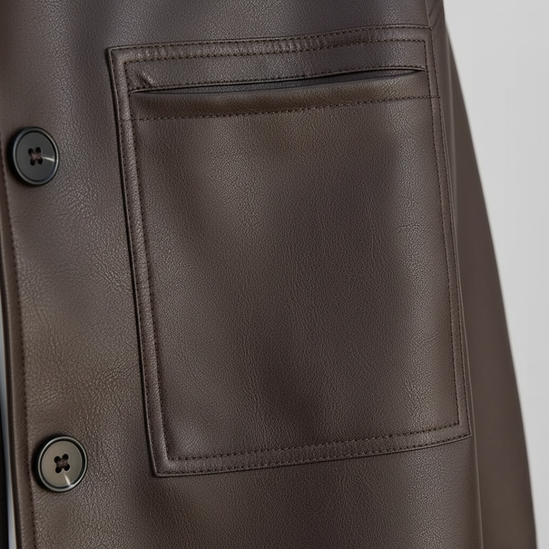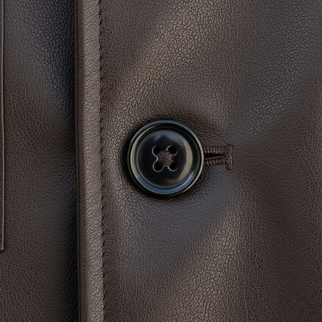 Tipo: Giacca in pelle sintetica con bottoni a contrasto, perfetta per occasioni casual e semi-formali.