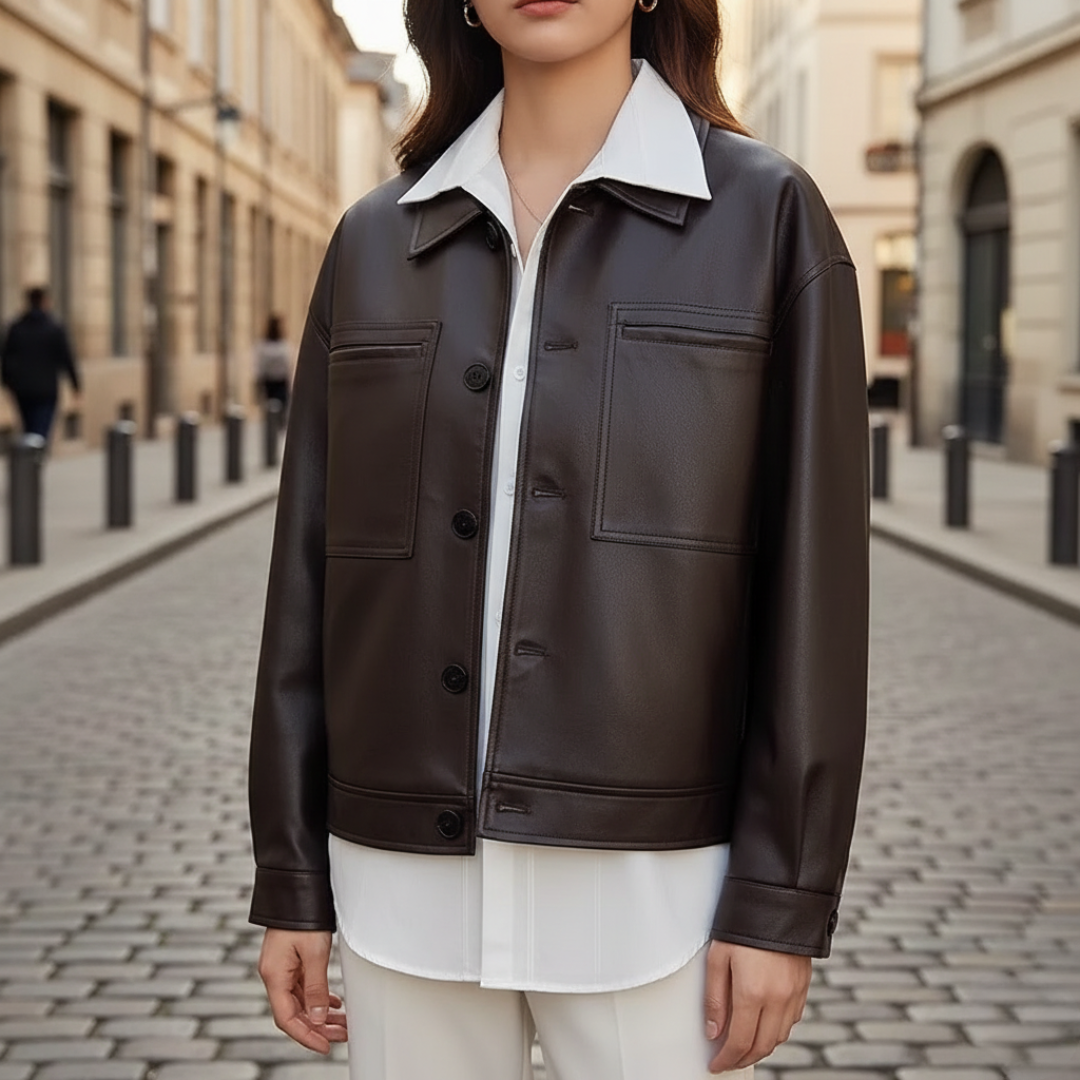 Aggiungi un tocco di eleganza con questa giacca da donna in pelle sintetica, ideale per ogni occasione autunnale e invernale.
