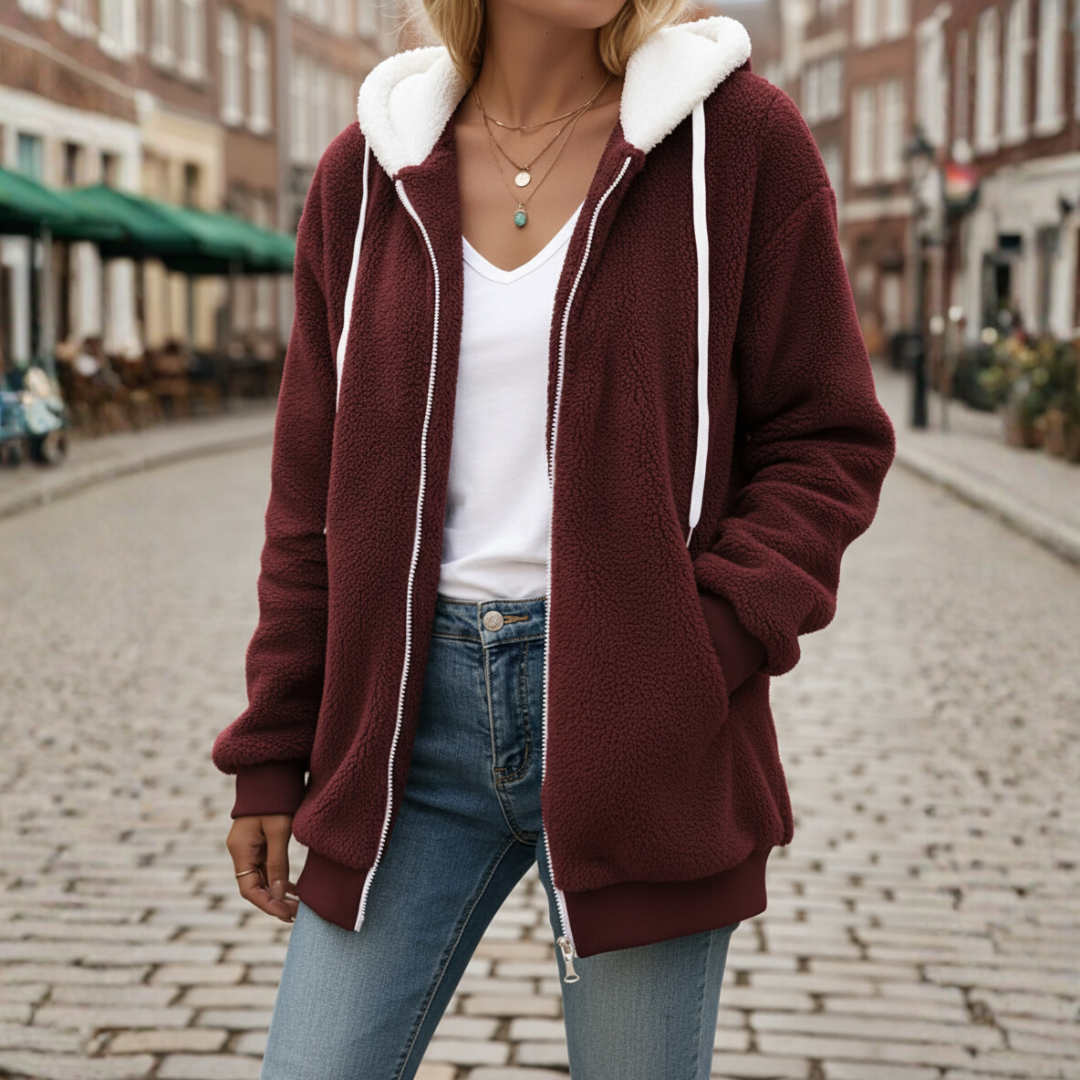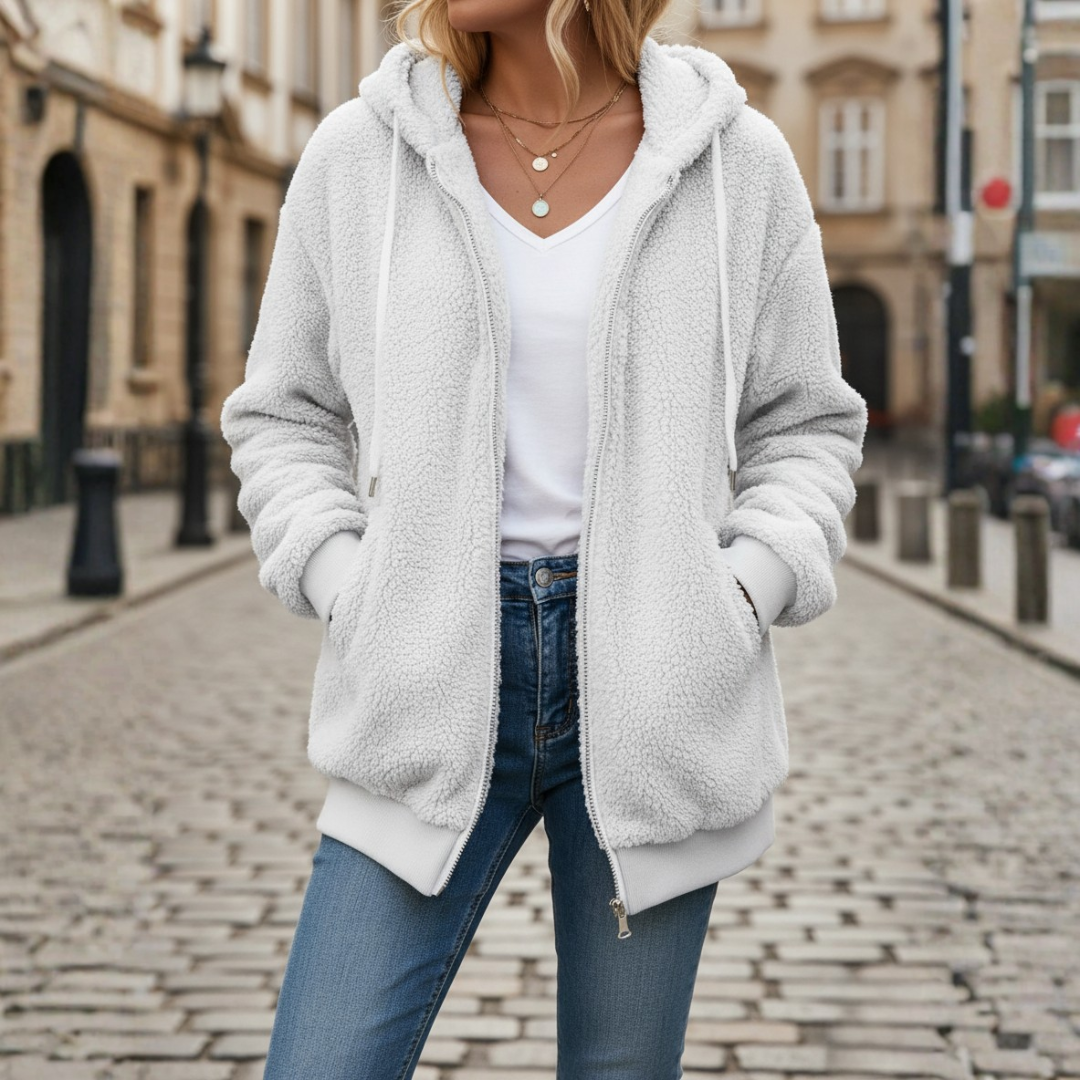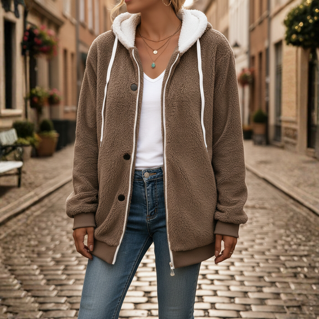 Giacca morbida con cappuccio per donna