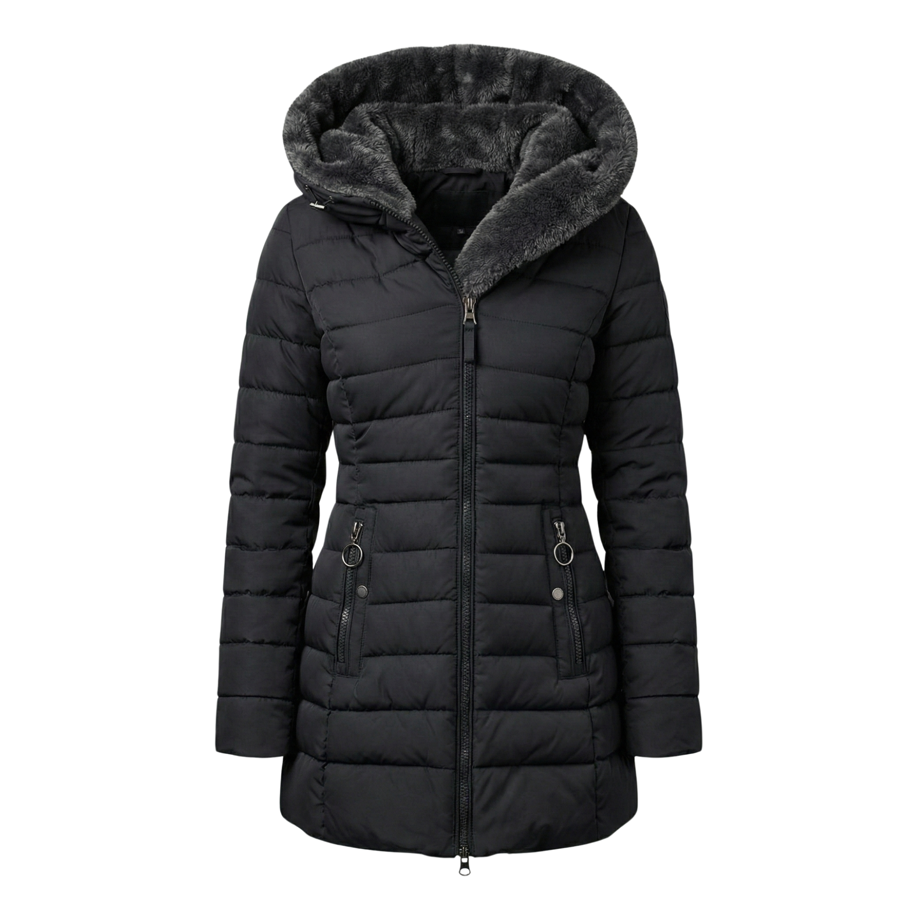 Questa giacca invernale da donna è realizzata con tessuto esterno in poliestere ad alta densità e imbottitura in piuma sintetica leggera, progettata per offrire un buon isolamento termico durante la stagione fredda. Le cuciture trapuntate, il cappuccio ampio e la chiusura frontale con zip completa contribuiscono a una protezione uniforme contro vento e basse temperature. Le tasche laterali con zip permettono di tenere al sicuro piccoli oggetti durante l’uso quotidiano.