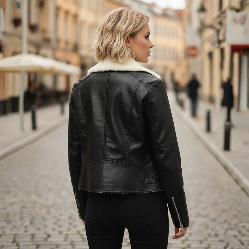 Giacca Donna in Ecopelle con Zip Frontale