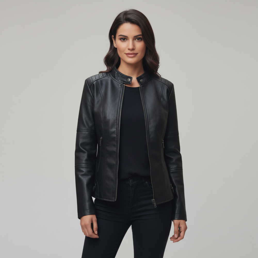 Giacca biker da donna con colletto alla coreana
