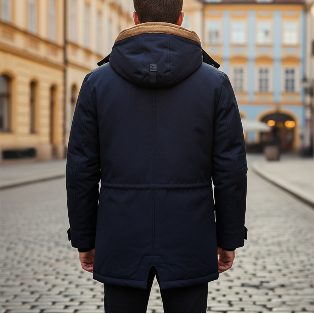 Giacca Uomo Impermeabile con Cappuccio e Interno Pelliccia