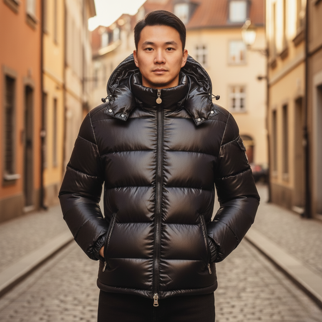 Giacca da uomo in piumino impermeabile, ideale per proteggersi dalle basse temperature. Con cappuccio regolabile e zip frontale, questa giacca è progettata per offrire comfort e calore durante le stagioni fredde. Il design moderno e funzionale la rende perfetta per occasioni casual e per l'uso quotidiano.