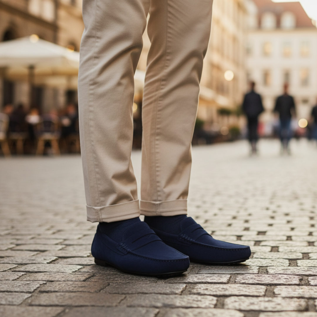 Questi mocassini da uomo sono realizzati in morbida pelle scamosciata, ideali per un look casual e confortevole. Disponibili in sei colori diversi, offrono un design semplice ma elegante, adatto per ogni occasione.