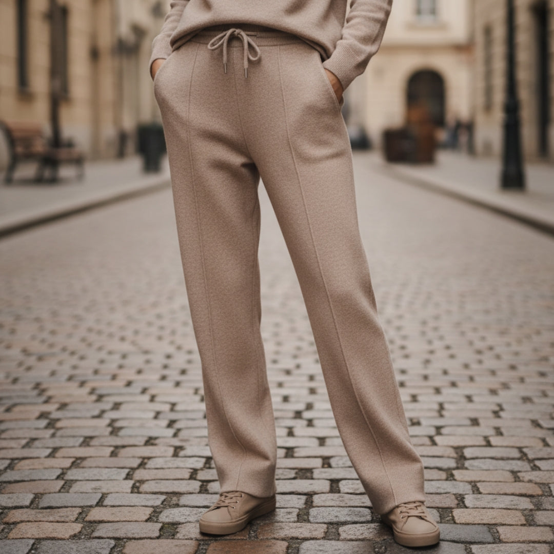 Con un design raffinato e dettagli curati, questi pantaloni sono incredibilmente versatili. Abbinali a un maglione coordinato per un completo sofisticato, oppure a una semplice t-shirt per un outfit più disinvolto. Ideali per il loungewear, ma sufficientemente chic per una passeggiata in città, si adattano a ogni occasione.