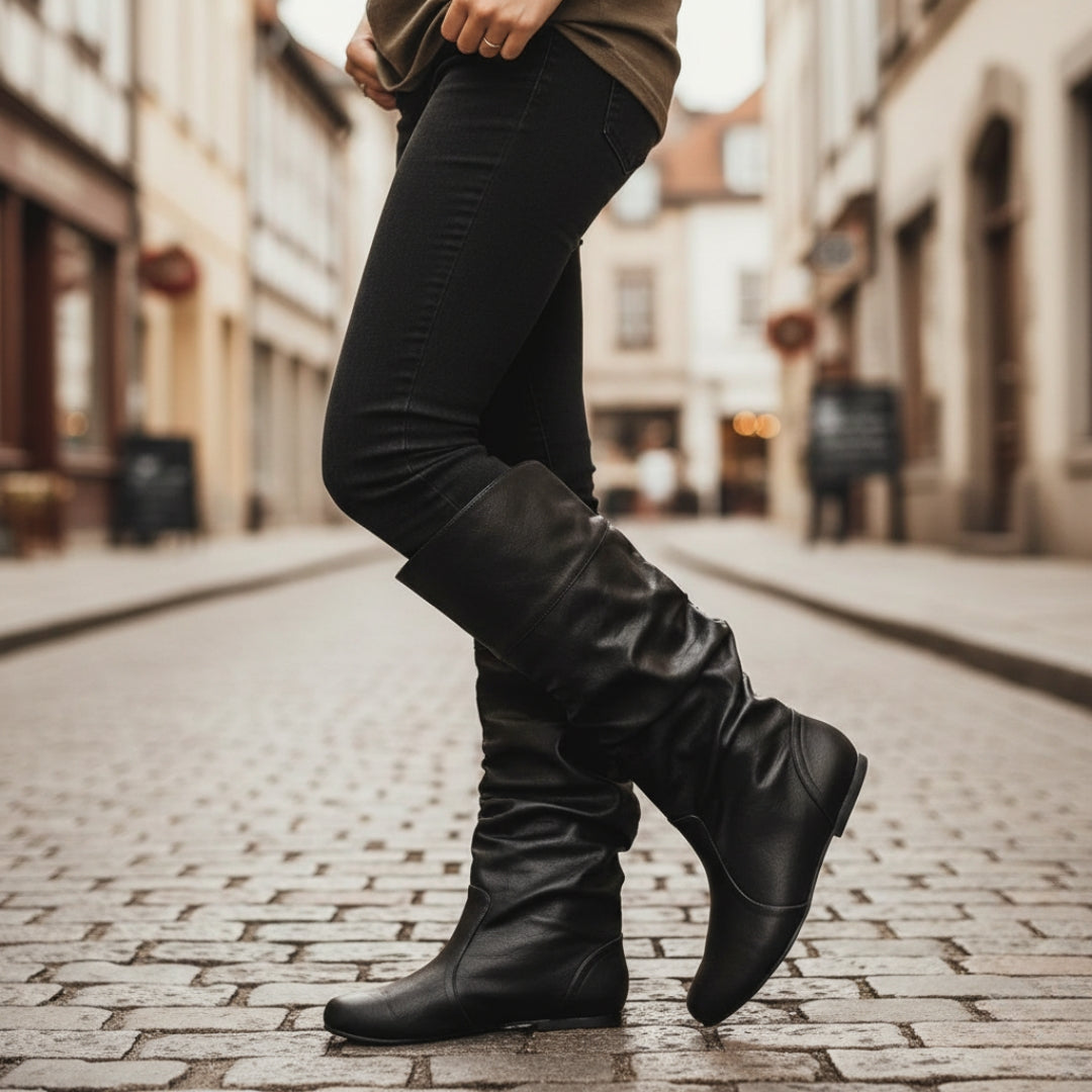 Realizzati con materiali morbidi e flessibili, questi stivali si adattano alla forma della gamba per un comfort ottimale. La suola piatta garantisce stabilità e facilità nel camminare, rendendoli ideali per l'uso quotidiano. Abbinali a jeans, leggings o gonne per un tocco di stile effortless.