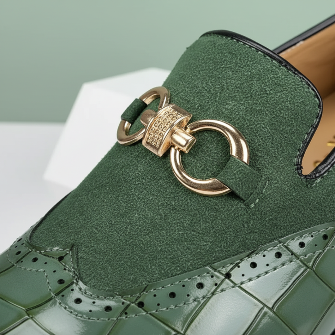 Mocassini da uomo in pelle e camoscio, con design versatile. Ideali per uso quotidiano, occasioni formali o in ufficio.