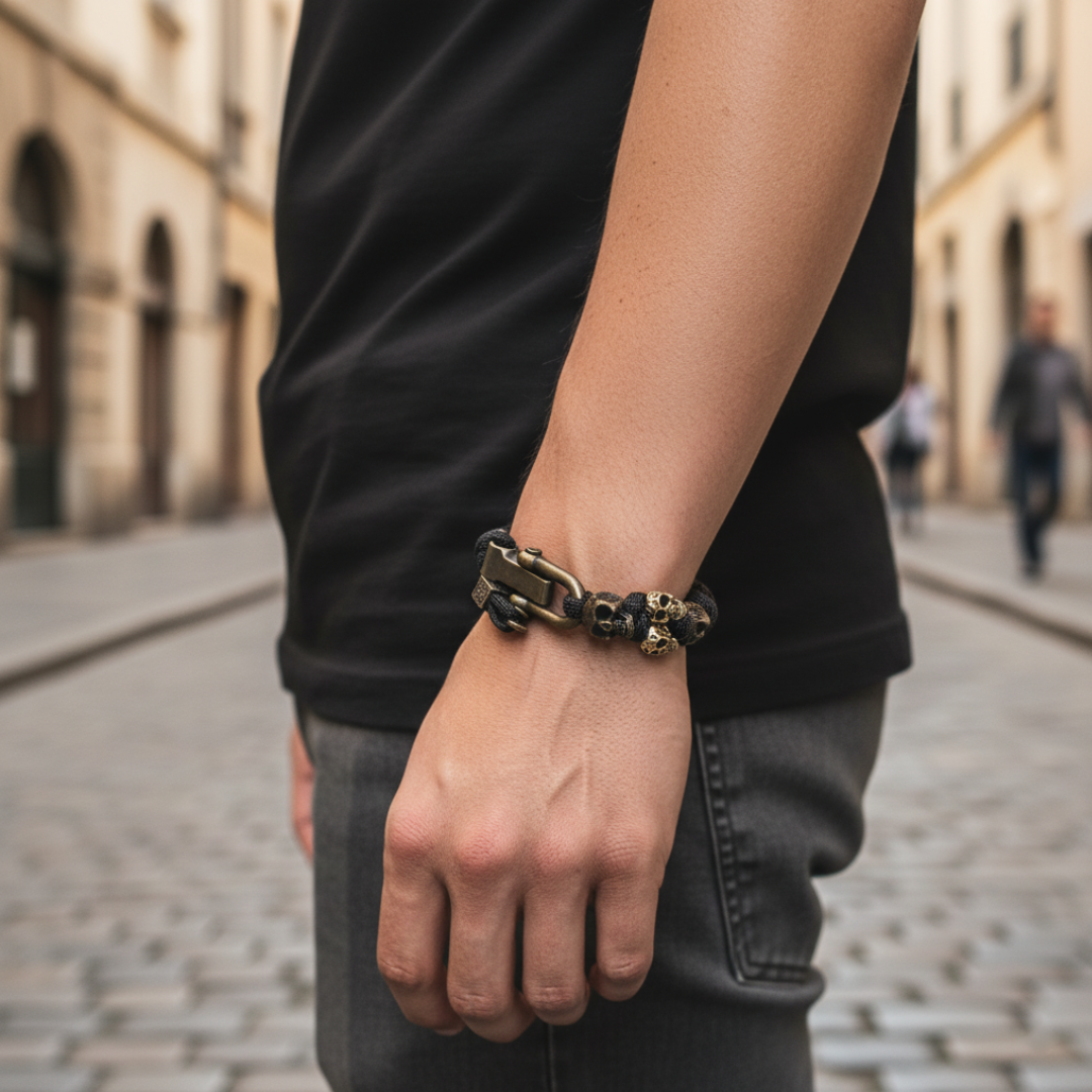 Men's Paracord Bracelet with Bronze Metal Skulls