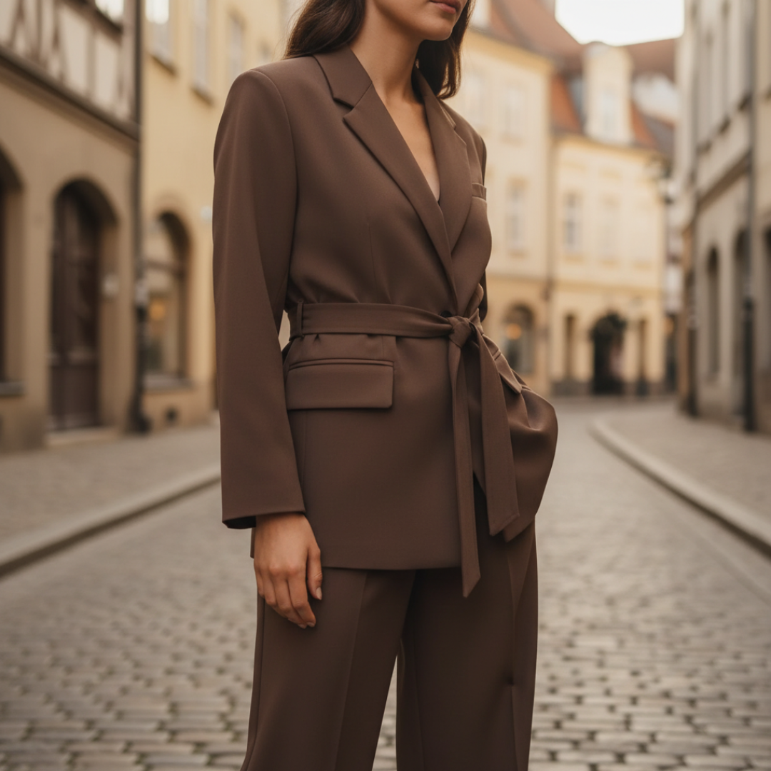 Conjunto de Mujer con Blazer con Cinturón y Pantalones