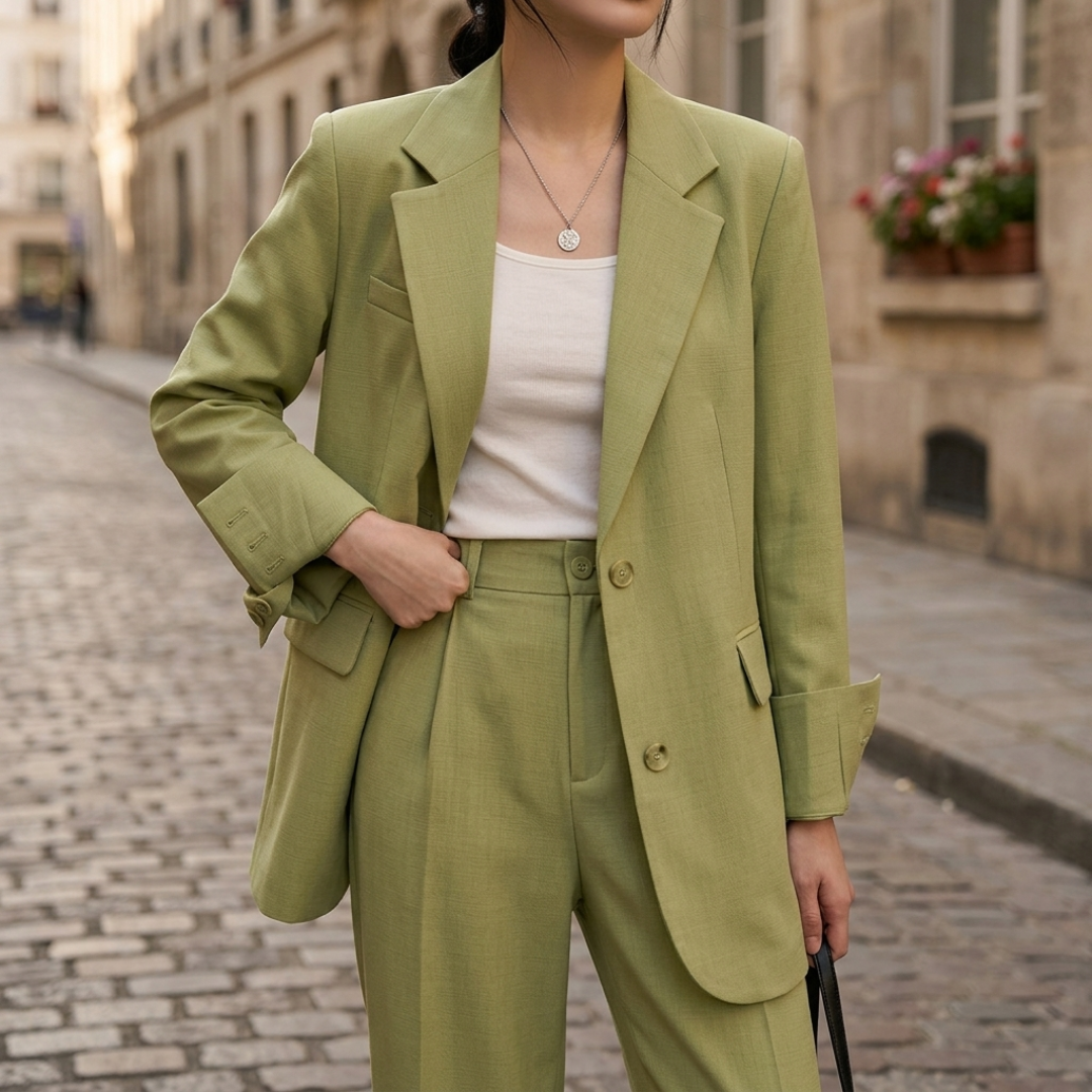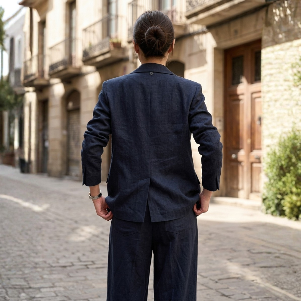 Conjunto de Mujer Blazer y Pantalones de Lino y Algodón para Primavera