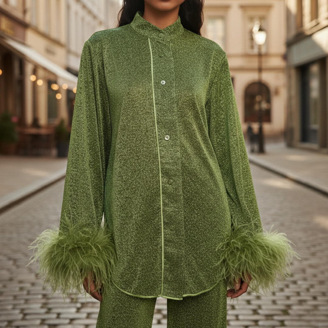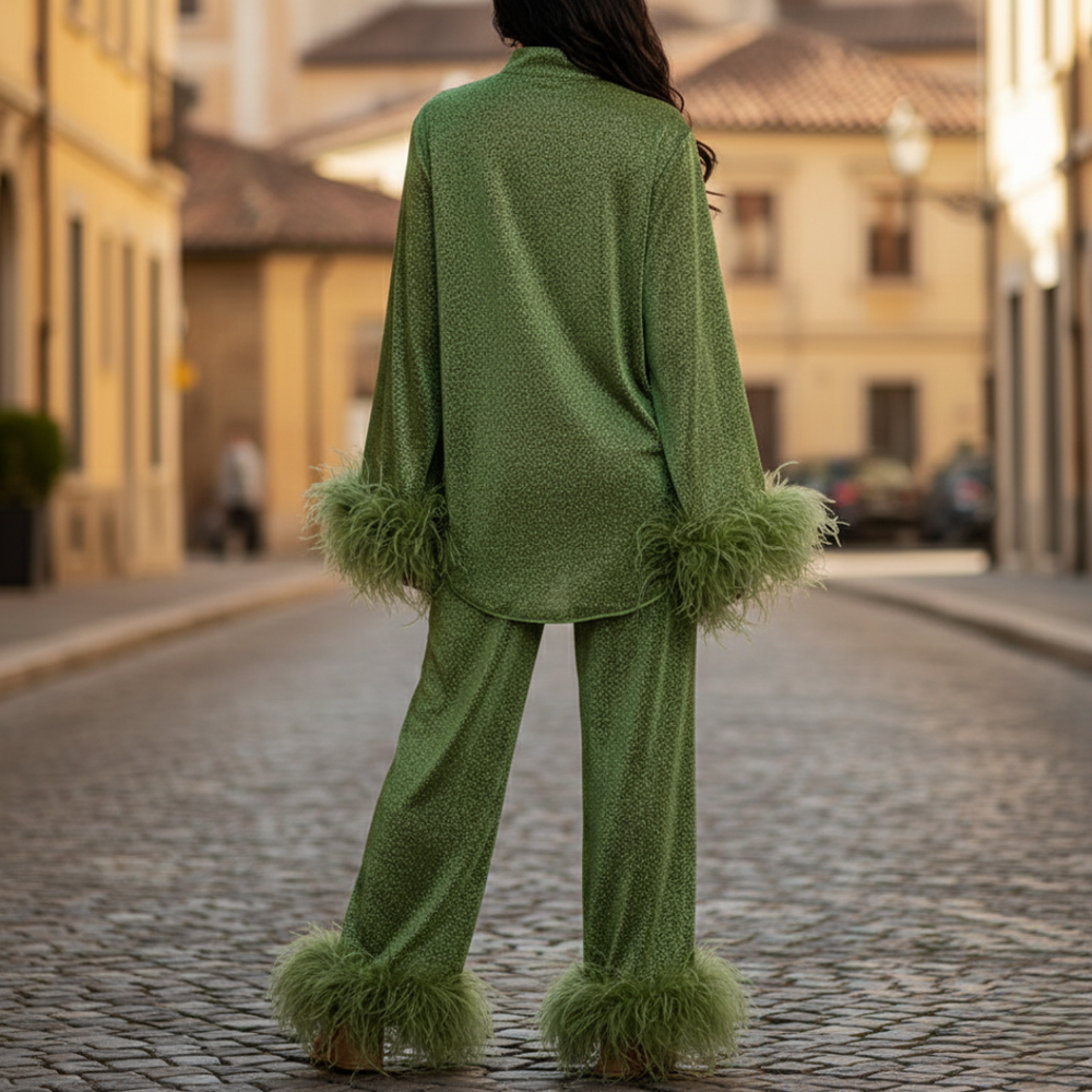 Conjunto de Noche para Mujer con Detalles de Plumas