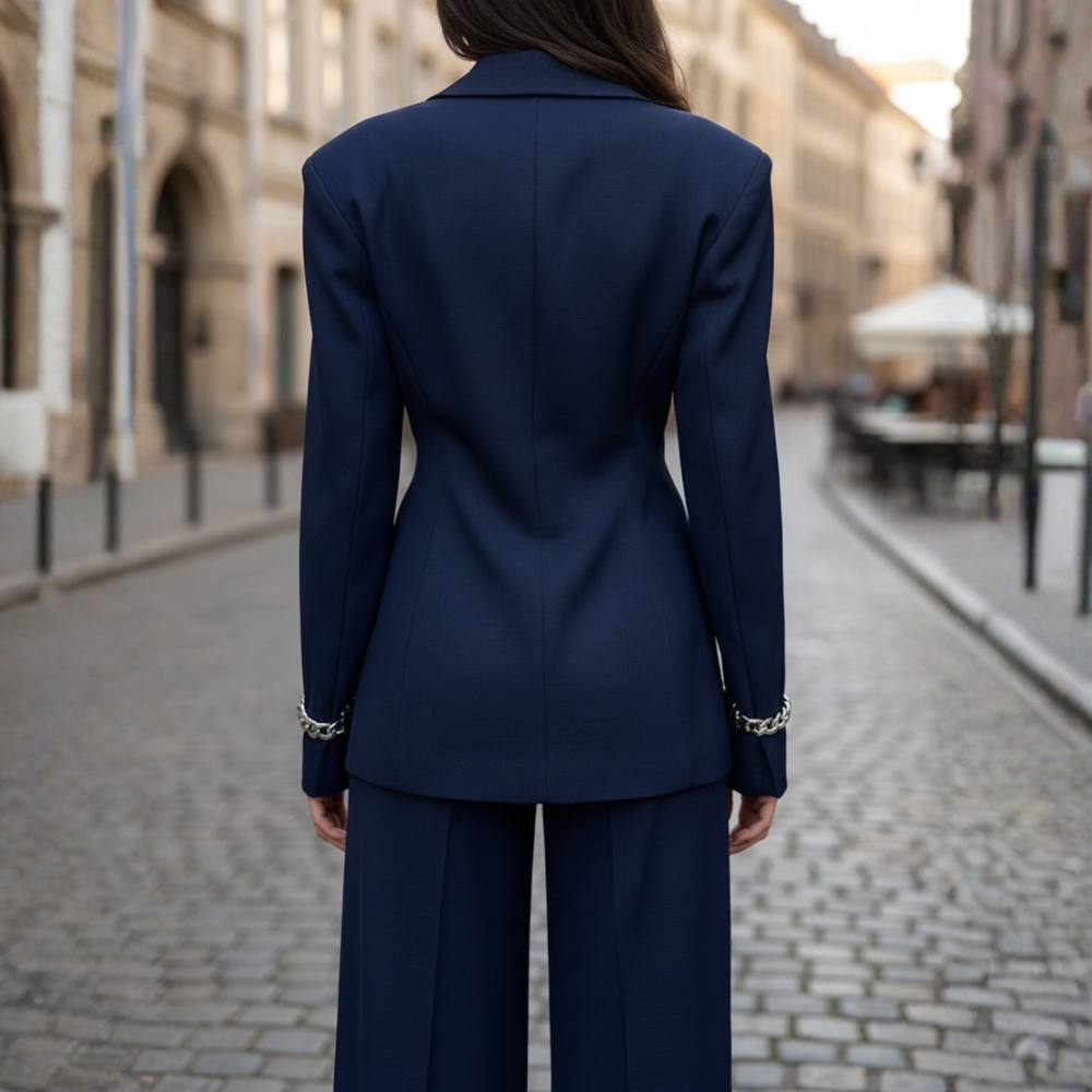 Conjunto de Mujer Blazer Cruzado y Pantalones de Pierna Ancha