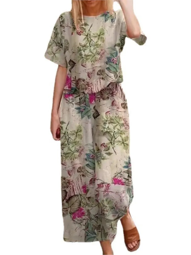 Completo Donna Vintage Estampado Manga Corta Cintura Alta Pantalones Anchos
