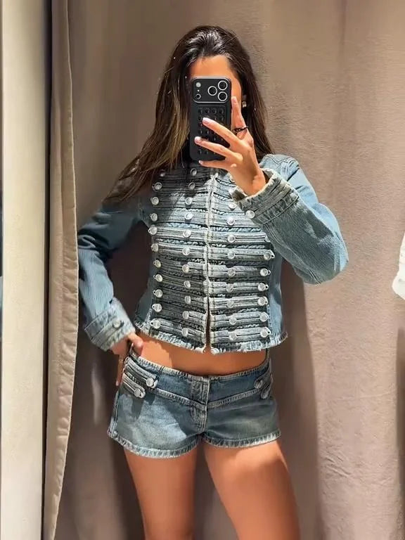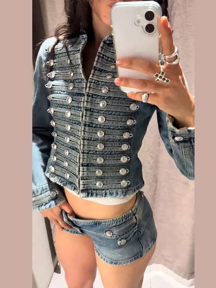 Conjunto Denim Mujer Índigo Chaqueta y Pantalones