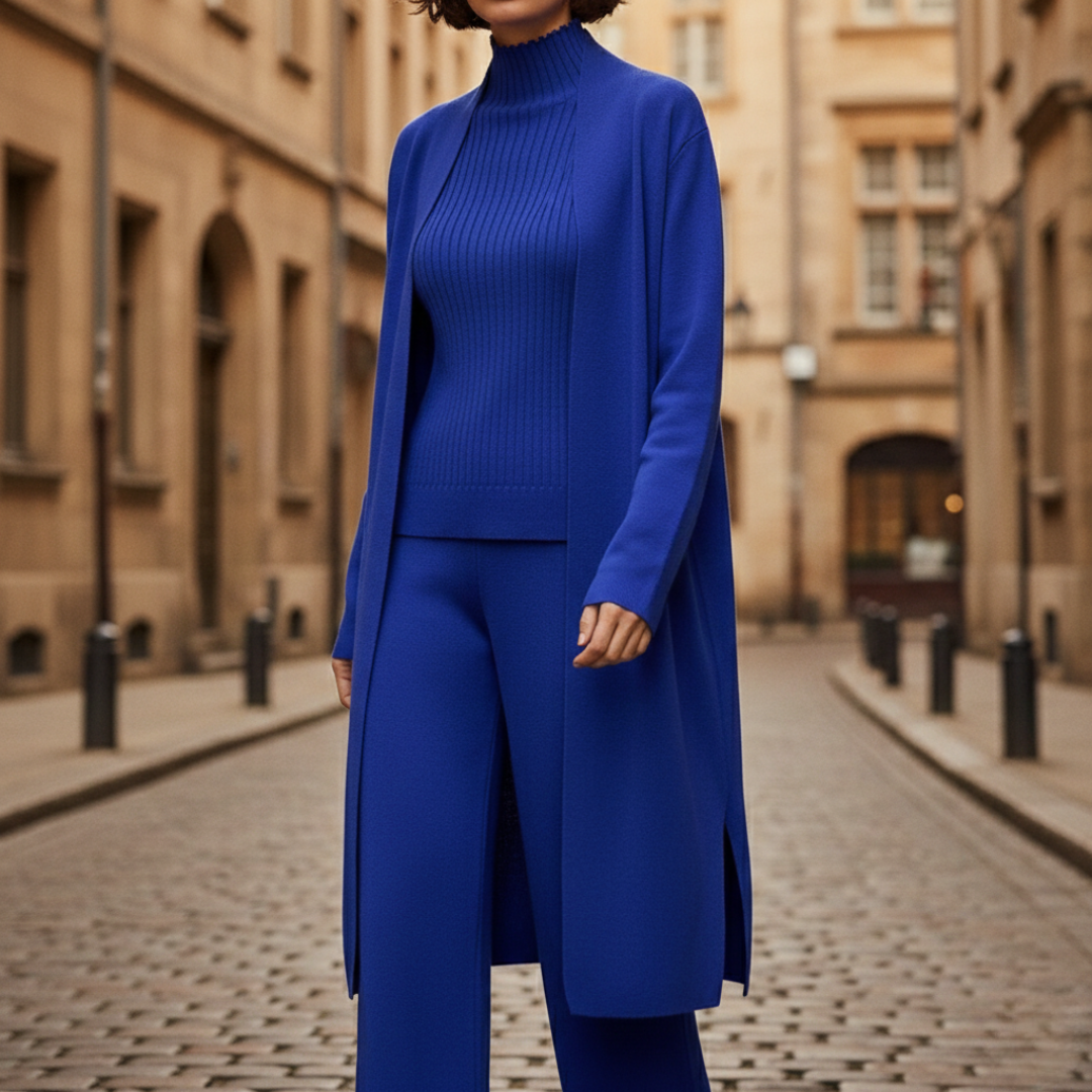Conjunto Coordinado para Mujer de 3 Piezas: Suéter, Pantalones y Cárdigan
